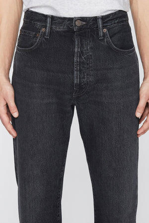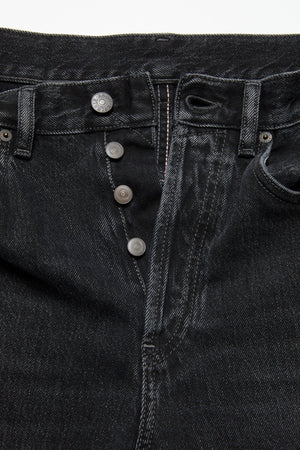 1996 jeans are cut to a regular fit with mid waist, straight leg and regular length. Crafted from non stretch denim in a black wash.