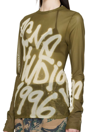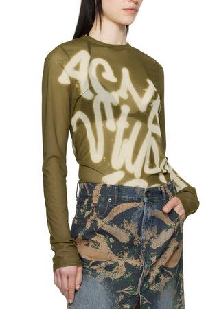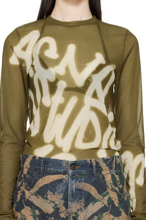 Long sleeve mesh t-shirt feature a seasonal Acne Studios 1996 logo with a sprayed finish. Cut to regular fit.