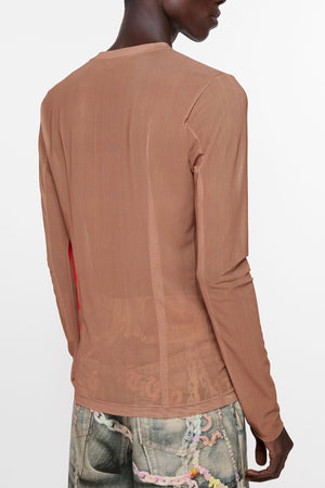LONG SLEEVE T-SHIRT SPRAYED LOGO IN TAUPE BEIGE, SS25