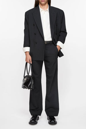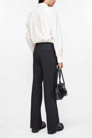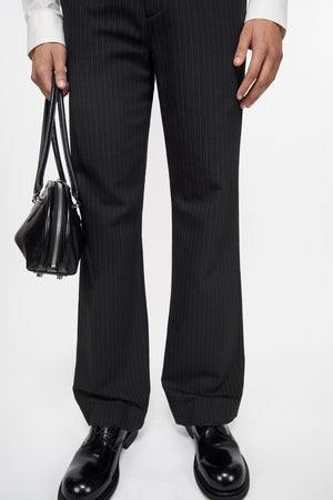 PINSTRIPE WOOL BLEND TROUSERS IN BLACK, SS25