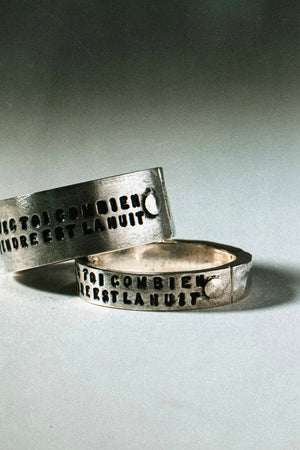 ● Delicate engraved lettering in French reads "avec toi combien tendre est la nuit"