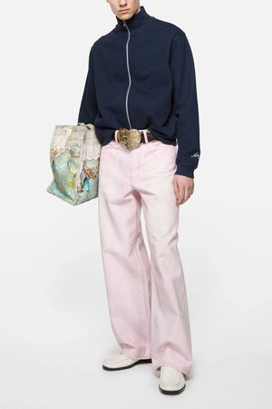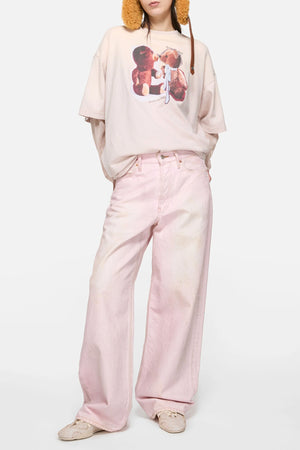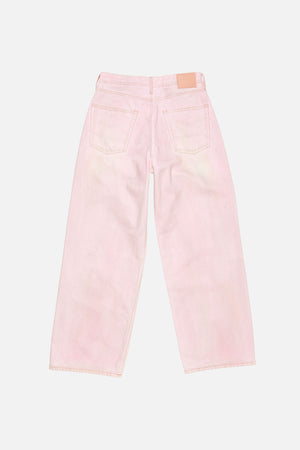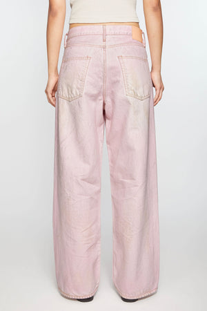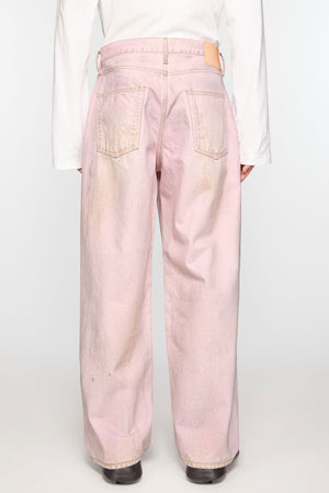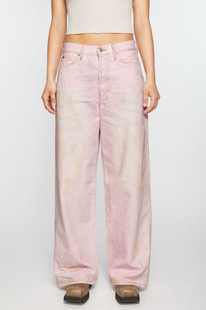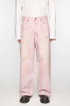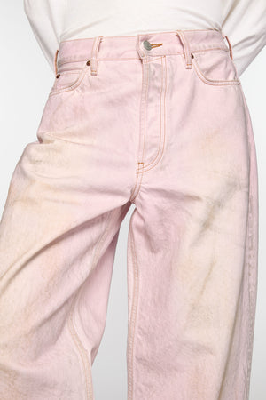 1981 jeans are cut to a loose fit with a low to mid waist, wide baggy leg and long length. Crafted from non-stretch denim with and featuring a soft pink-colored spray with manually-applied stains.