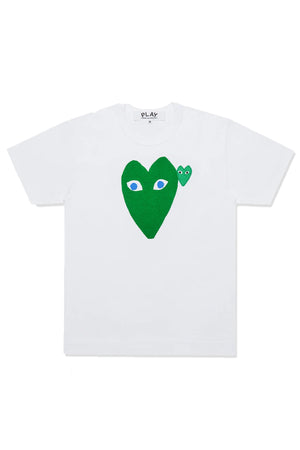 WHITE T SHIRT WITH TWO GREEN HEARTS, SS25
