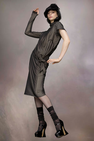 ASYMMETRIC RUCHED DRESS IN BLACK, SS24