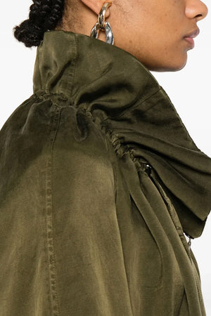 ● Cocoon blouson with gathered neckline and elasticated waistband, in overdyed cupro cotton blend