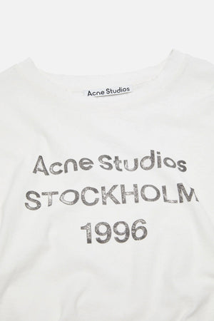Crew neck t-shirt features Acne Studios 1996 logo at the front and distressed details on neck, arm and hem. Crafted from organically grown cotton and hemp blend. Cut to a regular fit and hip length.