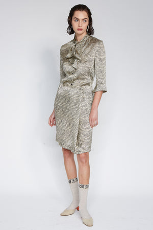 ● Draped feature on hip creating subtle drop on hemline