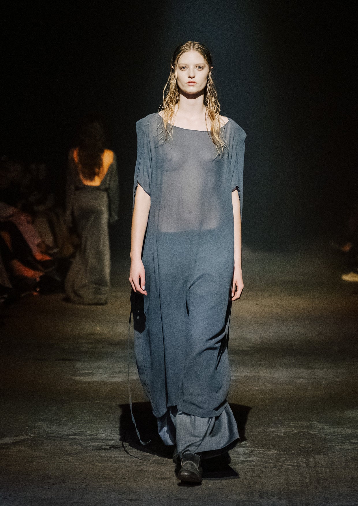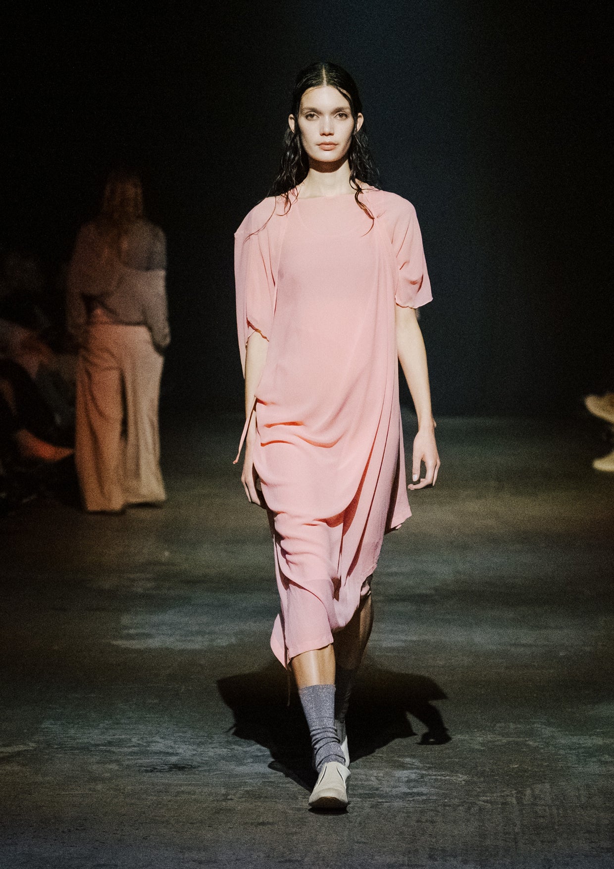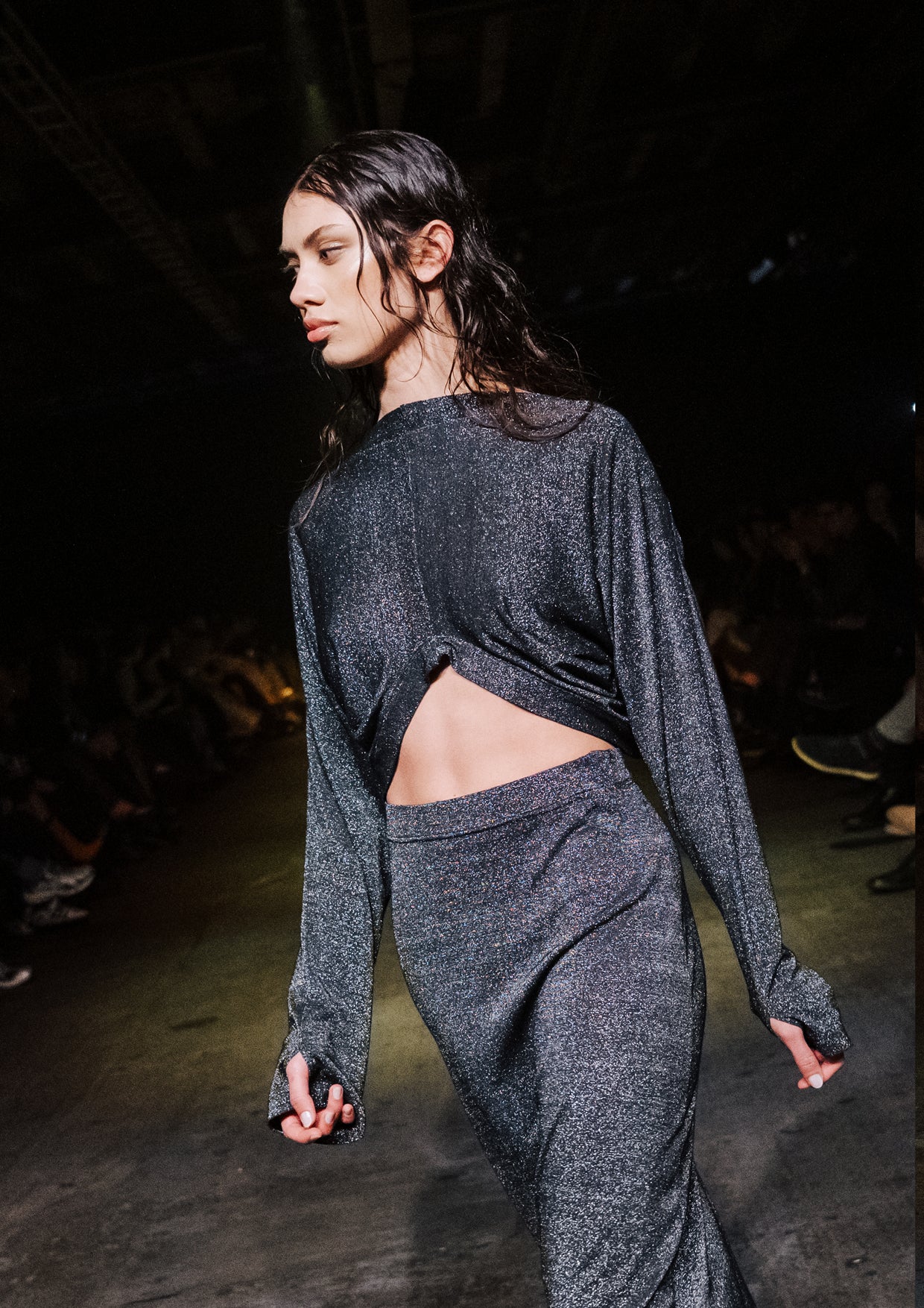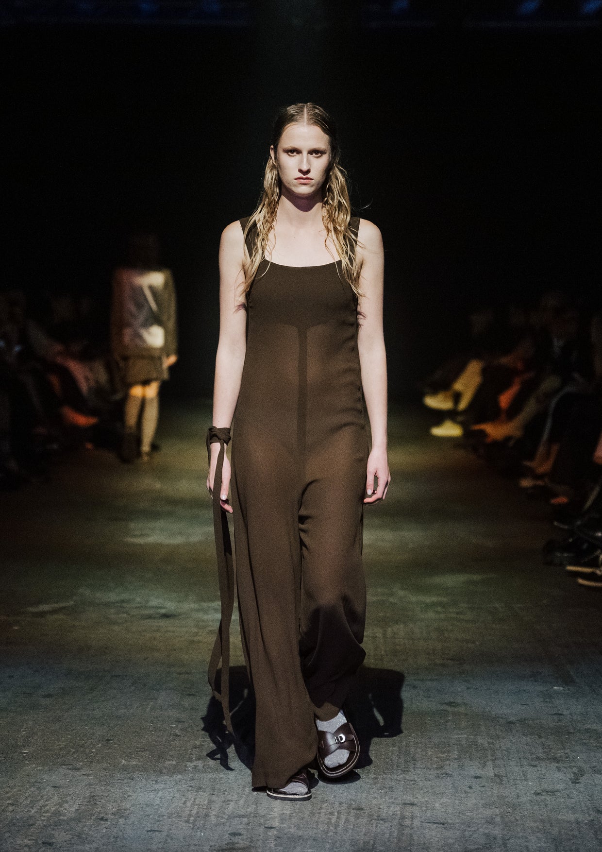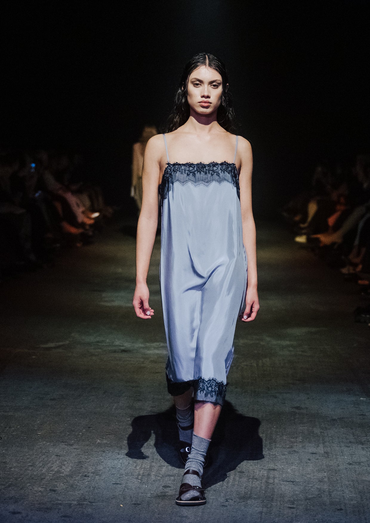The creative direction for the show drew on the relationship between the divine and nature, inspired by a story designer Elisabeth Findlay once read to her daughters about water, nymphs, and discovery. This narrative of adolescence with a feeling of extreme emotions, of innocence and unawareness, yet deeply connected to nature became the heartbeat of the show. The garments themselves told stories of memory and emotion with pieces such as the Harmony Dress constructed from archive remnants of fabric, layered with the brand’s history. The runway beauty embodied this energy. The direction from Zambesi was a dark yet summery look with smudged makeup and clumped hair evoking midnight swims, falling asleep with wet hair, and the careless abandon of a summer night. Hair Director, Sara Allsop for Shark Beauty and Makeup Director, Liz Hyun captured this with hair and makeup looks that are ethereal, undone, and romantic - a celebration of unselfconscious beauty. Music carried the same intensity. From Spellling’s 'Boys at School' and SOPHIE’s hyperpop extremes to Yoko Ono’s I Love You Earth, the soundtrack swelled with defiance, romantic vulnerability, and reverence for the planet echoing the adolescent extremes and divine connection central to Instrumental.