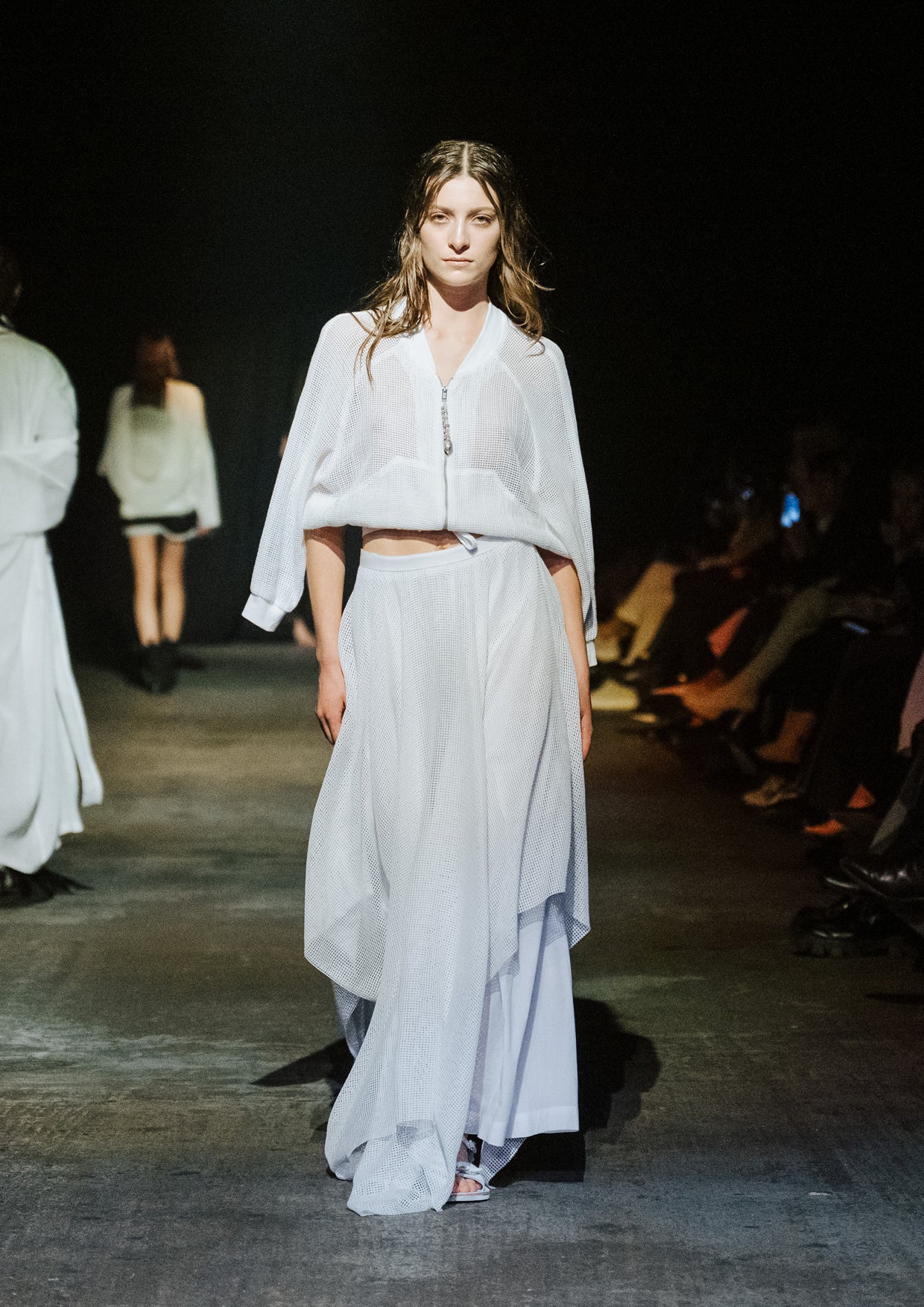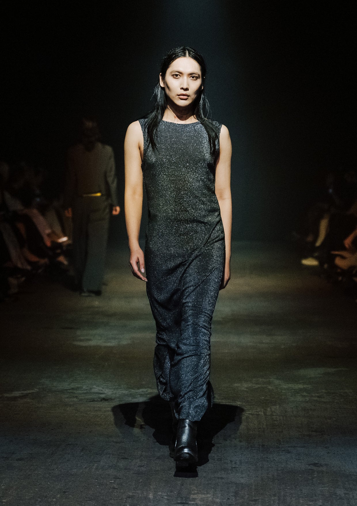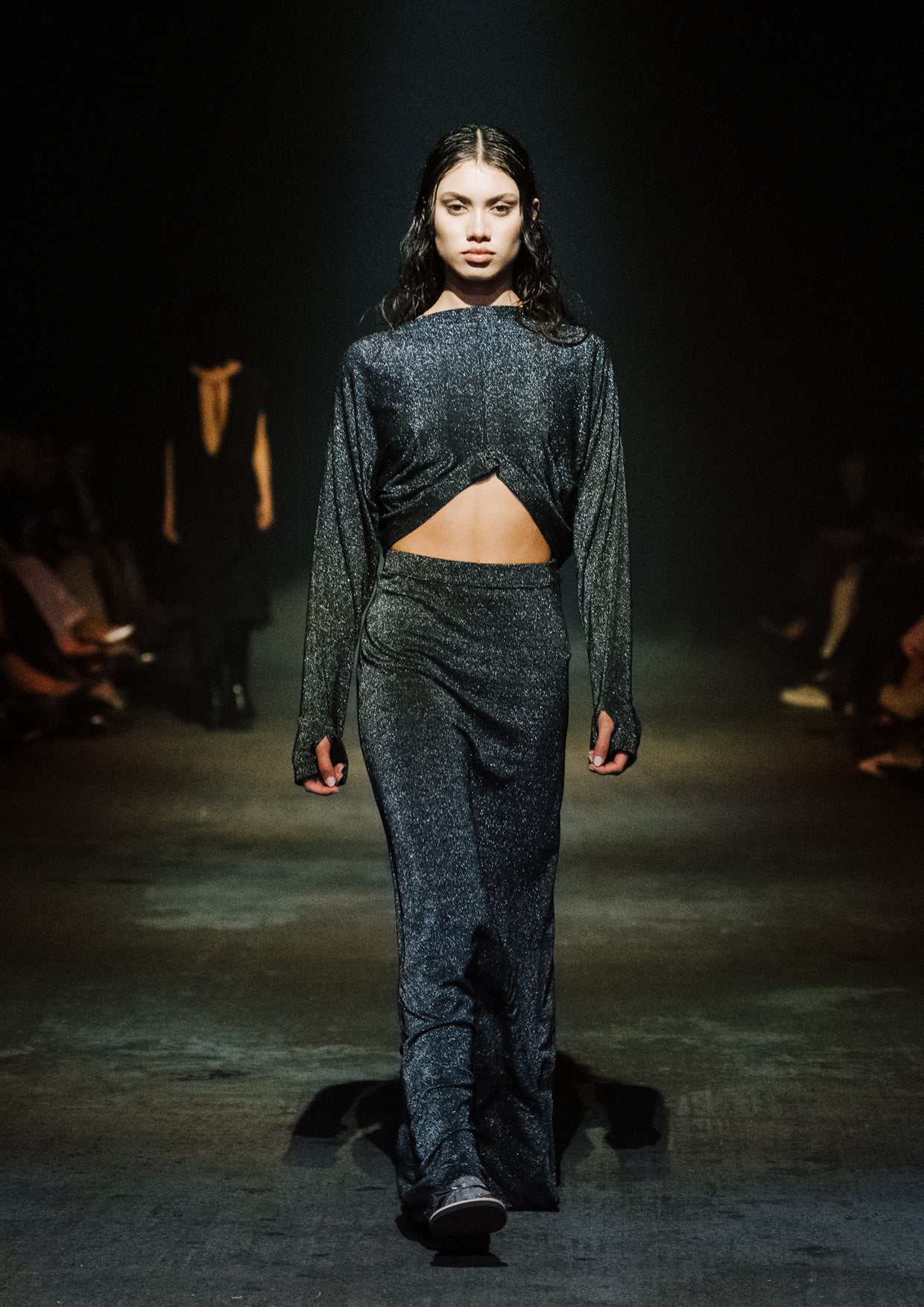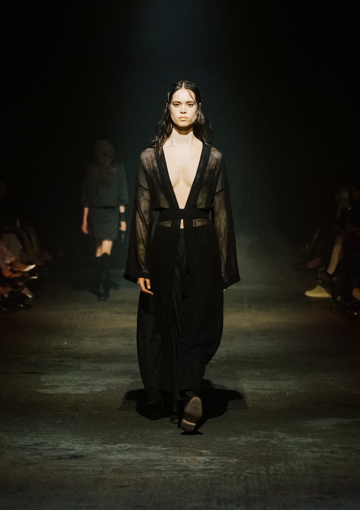The creative direction for the show drew on the relationship between the divine and nature, inspired by a story designer Elisabeth Findlay once read to her daughters about water, nymphs, and discovery. This narrative of adolescence with a feeling of extreme emotions, of innocence and unawareness, yet deeply connected to nature became the heartbeat of the show. The garments themselves told stories of memory and emotion with pieces such as the Harmony Dress constructed from archive remnants of fabric, layered with the brand’s history. The runway beauty embodied this energy. The direction from Zambesi was a dark yet summery look with smudged makeup and clumped hair evoking midnight swims, falling asleep with wet hair, and the careless abandon of a summer night. Hair Director, Sara Allsop for Shark Beauty and Makeup Director, Liz Hyun captured this with hair and makeup looks that are ethereal, undone, and romantic - a celebration of unselfconscious beauty. Music carried the same intensity. From Spellling’s 'Boys at School' and SOPHIE’s hyperpop extremes to Yoko Ono’s I Love You Earth, the soundtrack swelled with defiance, romantic vulnerability, and reverence for the planet echoing the adolescent extremes and divine connection central to Instrumental.