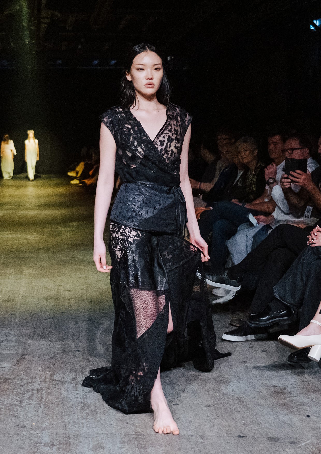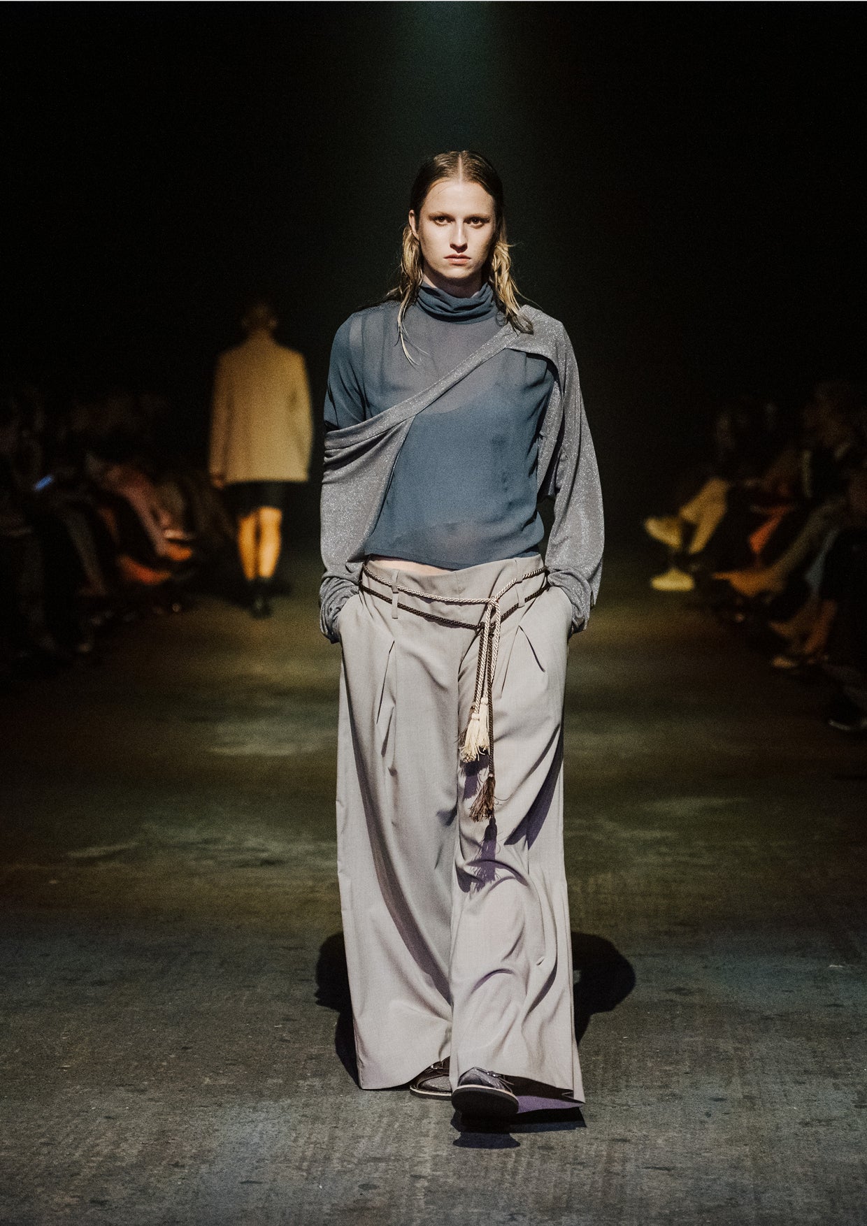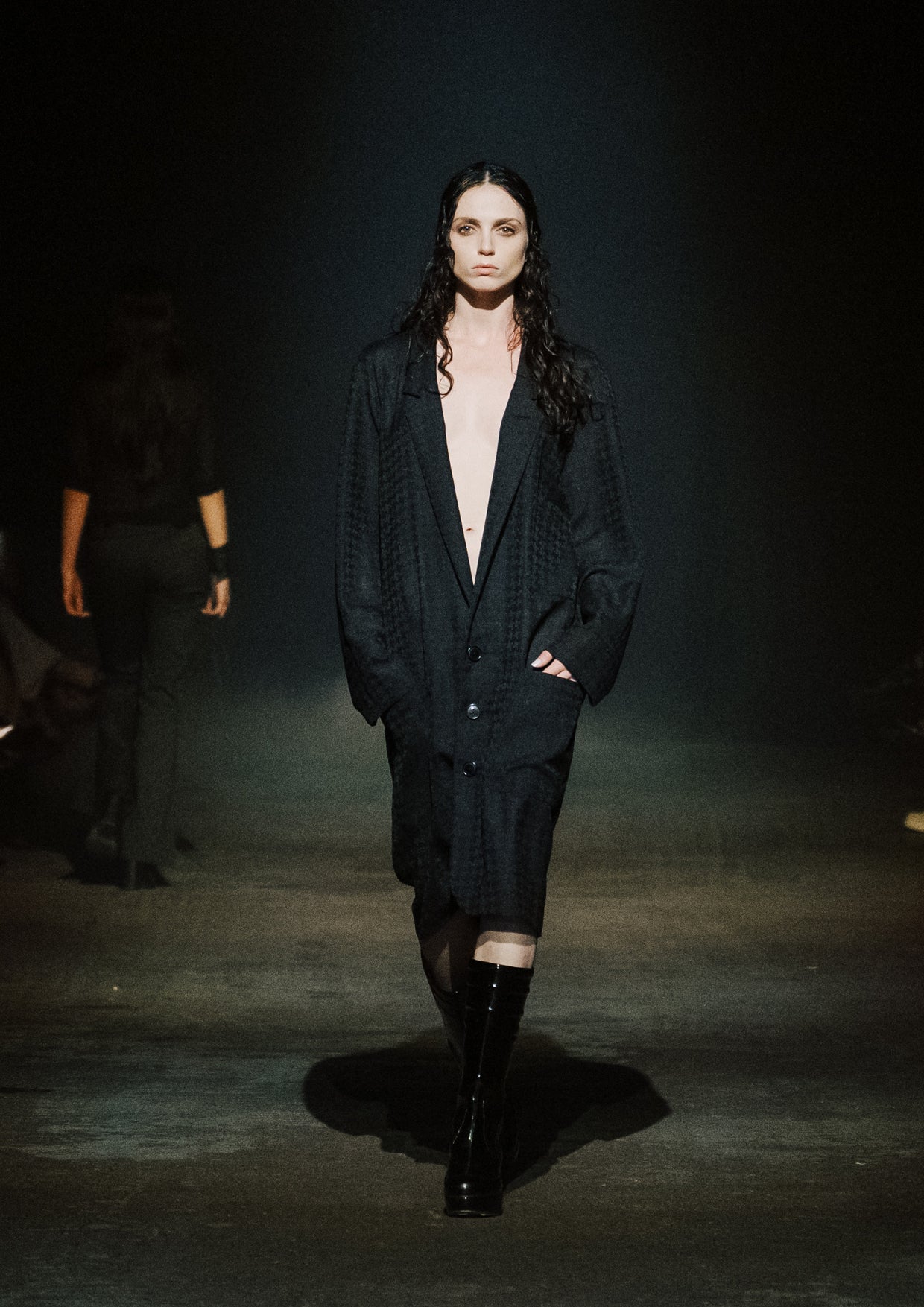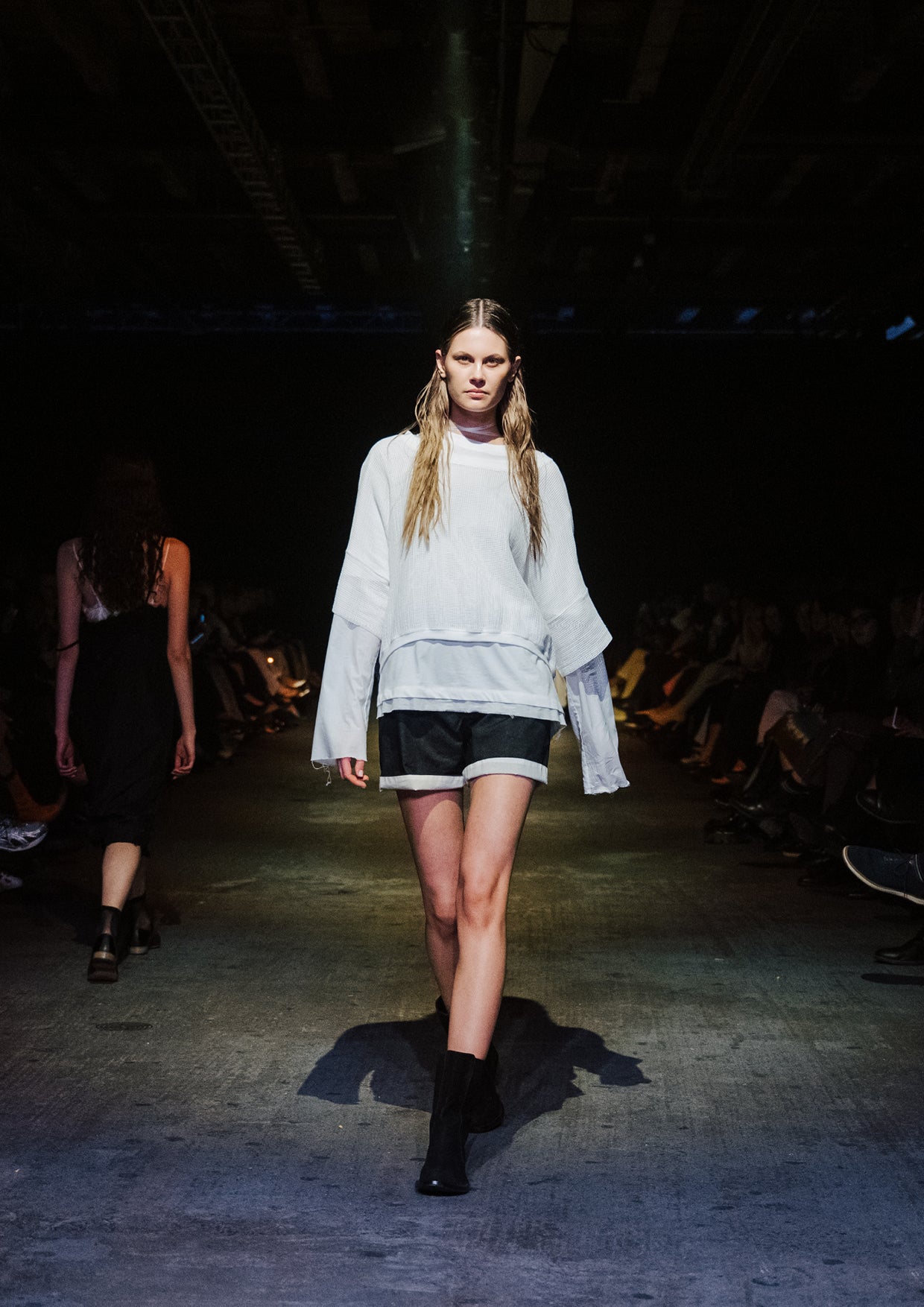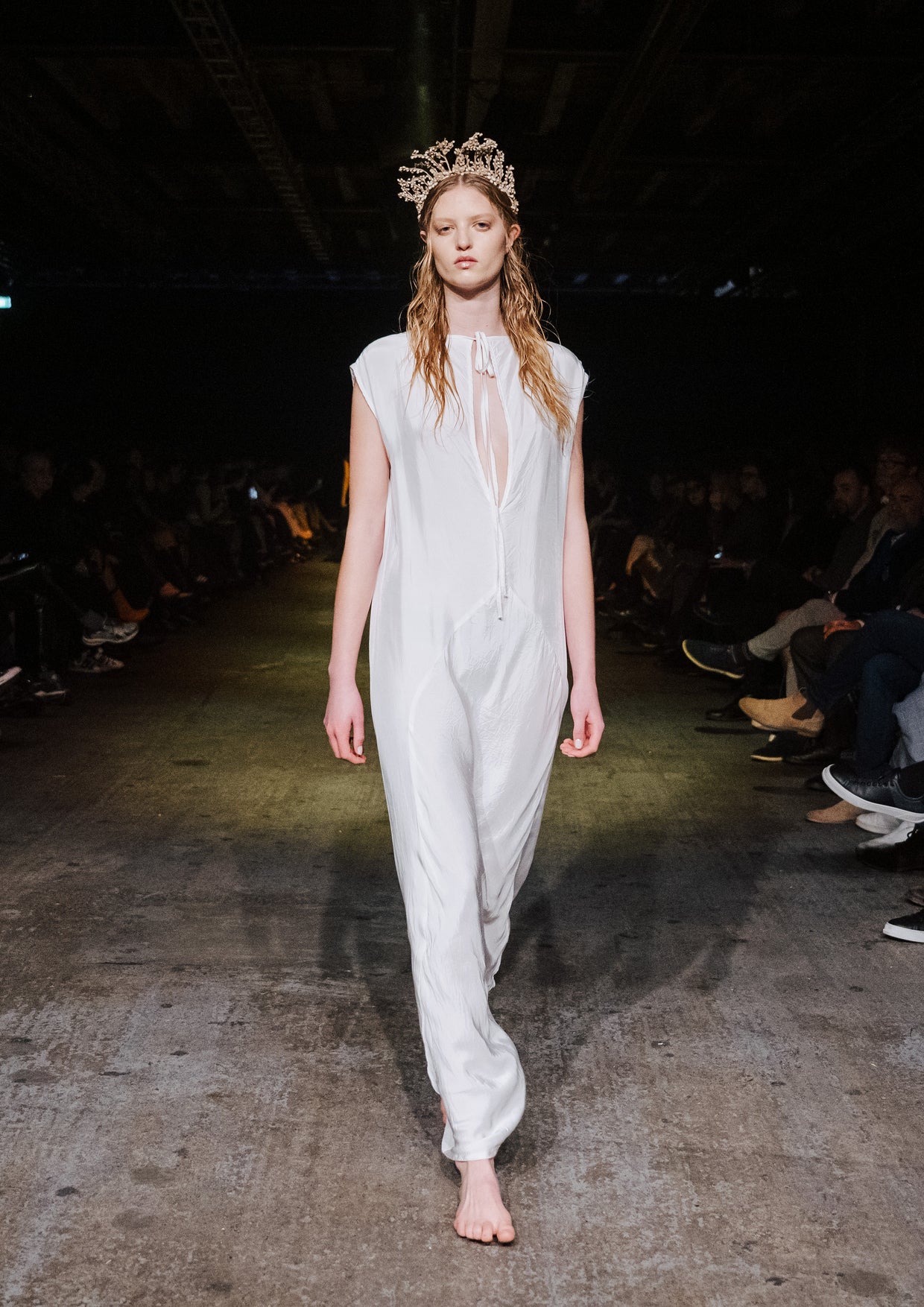 The creative direction for the show drew on the relationship between the divine and nature, inspired by a story designer Elisabeth Findlay once read to her daughters about water, nymphs, and discovery. This narrative of adolescence with a feeling of extreme emotions, of innocence and unawareness, yet deeply connected to nature became the heartbeat of the show. The garments themselves told stories of memory and emotion with pieces such as the Harmony Dress constructed from archive remnants of fabric, layered with the brand’s history. The runway beauty embodied this energy. The direction from Zambesi was a dark yet summery look with smudged makeup and clumped hair evoking midnight swims, falling asleep with wet hair, and the careless abandon of a summer night. Hair Director, Sara Allsop for Shark Beauty and Makeup Director, Liz Hyun captured this with hair and makeup looks that are ethereal, undone, and romantic - a celebration of unselfconscious beauty. Music carried the same intensity. From Spellling’s 'Boys at School' and SOPHIE’s hyperpop extremes to Yoko Ono’s I Love You Earth, the soundtrack swelled with defiance, romantic vulnerability, and reverence for the planet echoing the adolescent extremes and divine connection central to Instrumental.
