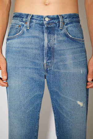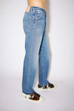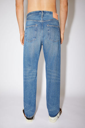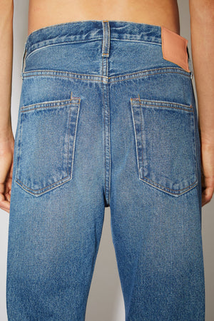 Acne Studios blue loose fit jeans are made from rigid Japanese denim with a deep rise and a loose leg which achieves a standard straight leg.