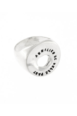 ● Delicate engraved wrap-around lettering in French: "Au milieu de nulle part"
