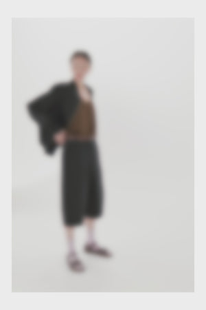 ● Drop crotched over-the-knee shorts in a sculptural cotton/spandex blend