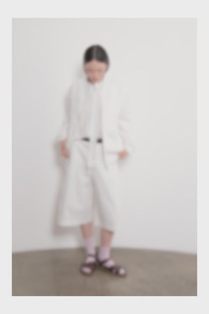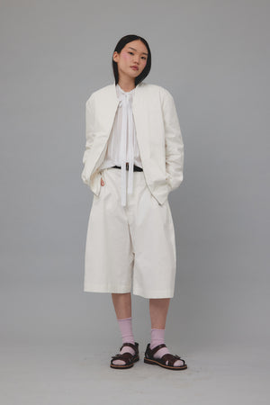 ● Drop crotched over-the-knee shorts in a sculptural cotton/spandex blend