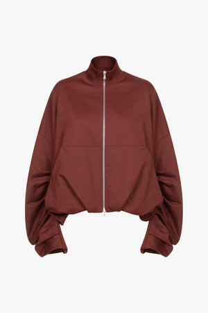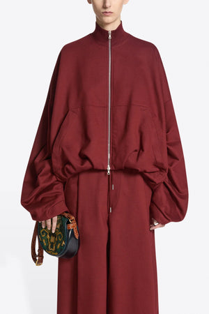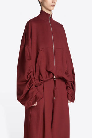 ● Oversized zipped jacket in cotton jersey with funnel neck and draping