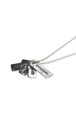 ● Hand-crafted sterling silver necklace featuring five pendant charms