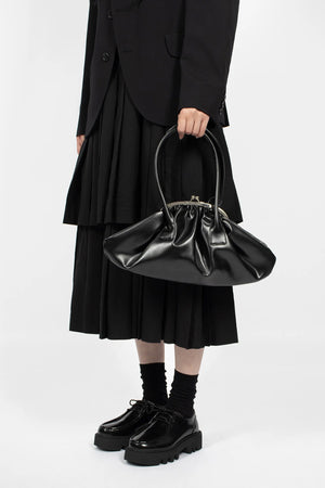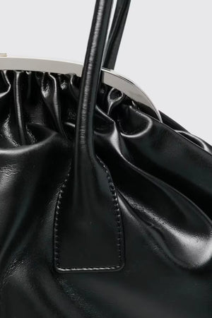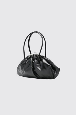 FAUX LEATHER SMALL GATHERED BAG IN BLACK, FW25