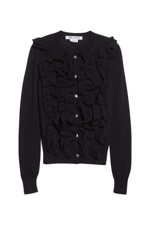 RUFFLE BUTTON-UP CARDIGAN IN BLACK, FW25